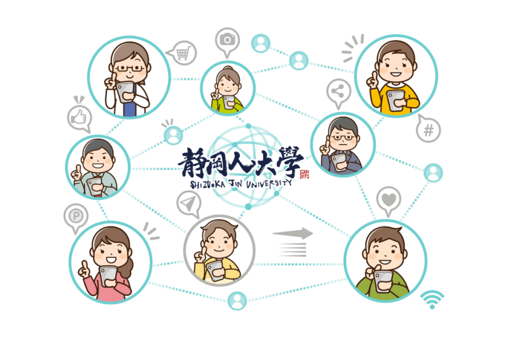 SNSやオンラインツールの活用、対面でのコミュニケーション、ローカルメディア「静岡人」を中心に、静岡の未来を一緒に創っていく大学です。